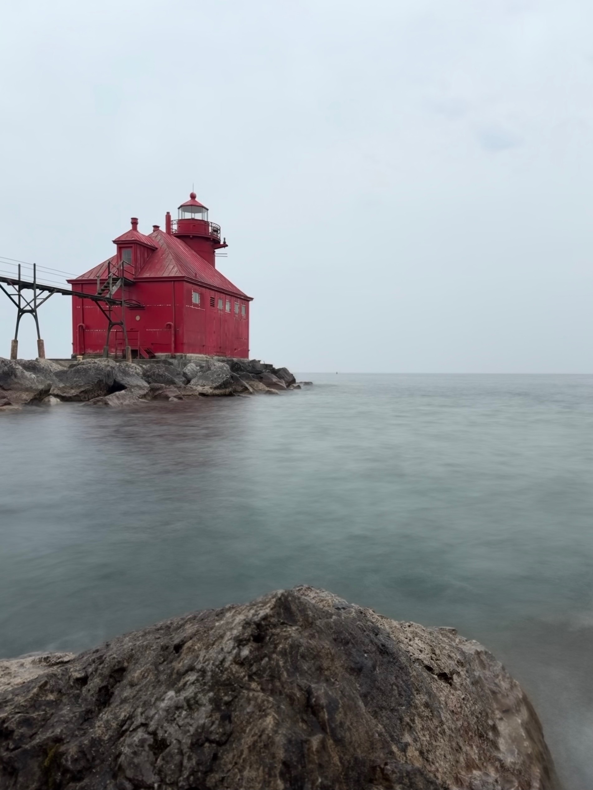 One of the most Instagram-worthy spots in all of Door County, this bright red lighthouse sits dramatically at the end of a long pier where the canal meets Lake Michigan. Whether you visit at sunrise or sunset, the reflection off the water and the bold contrast against the sky make this a must-see. If you have access to a boat, paddleboard, or kayak, we think seeing this lighthouse from the water is the best way to experience it.