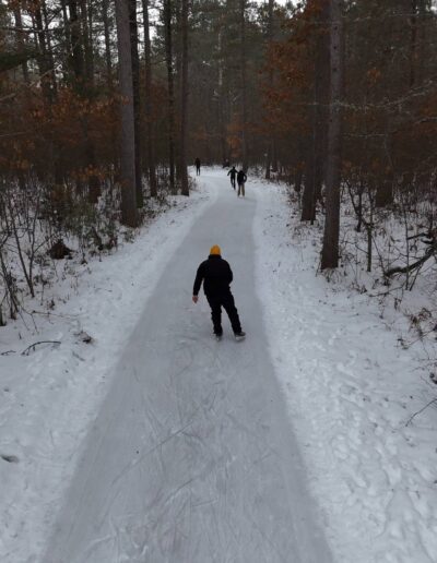 The trail is smooth and meticulously maintained, thanks to a dedicated team of volunteers and regular Zamboni grooming. When we visited, the ice was flawless, making it easy to see why this ribbon has become such a beloved winter attraction—it combines the joy of skating with the serene beauty of the Northwoods.